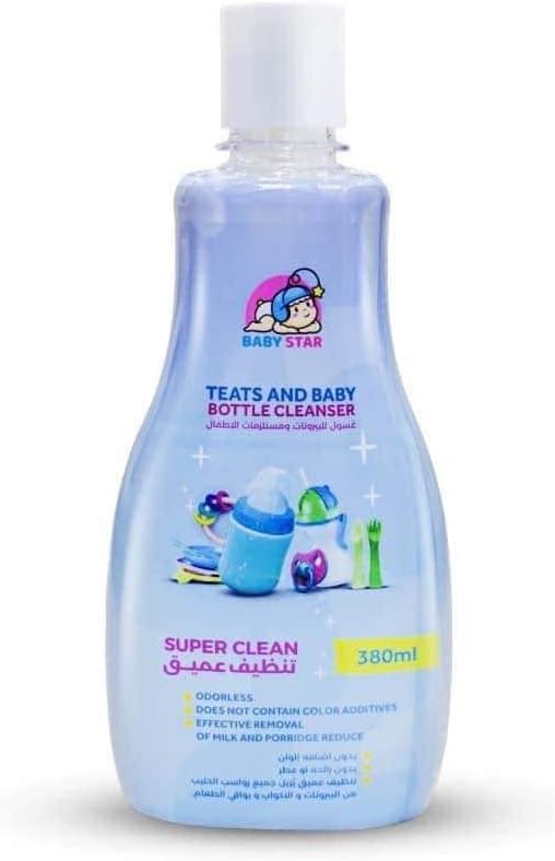 منظف ببرونة الاطفال والحلمات من بيبي ستار ، 380 ملليلتر جيني عديم اللون